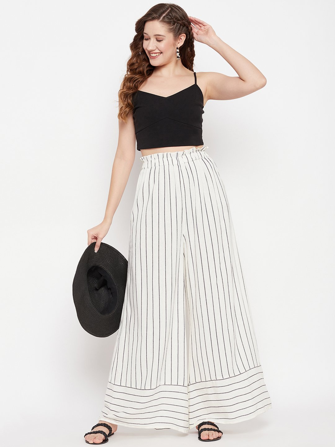 WOVEN LOOSE FIT ANDWIDE BOTTOM PALAZZO