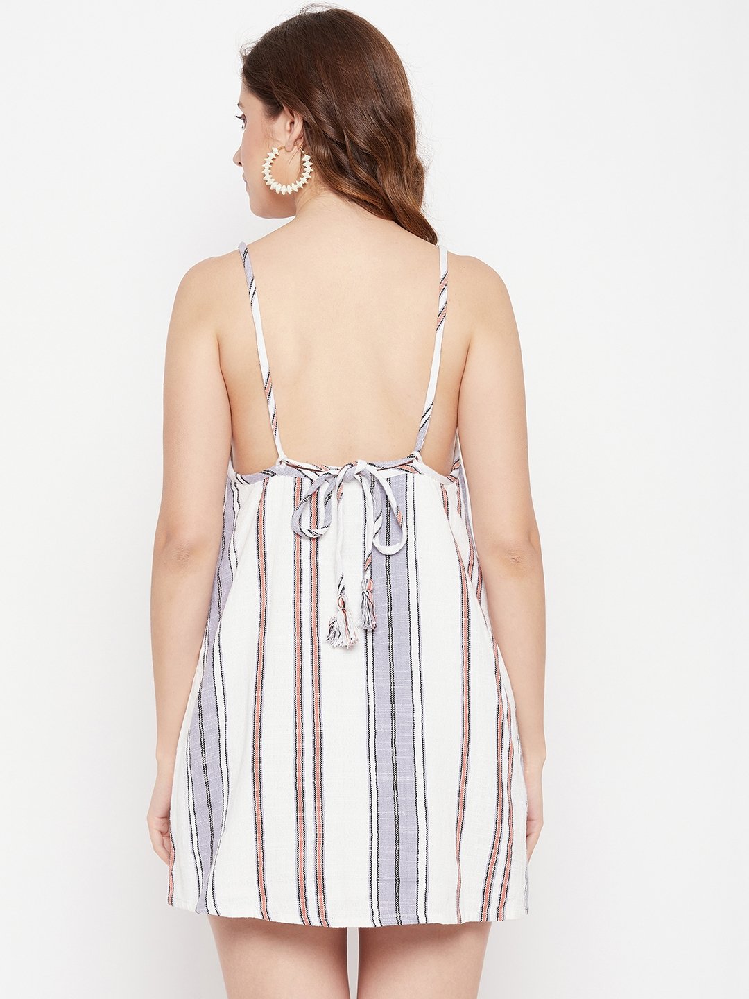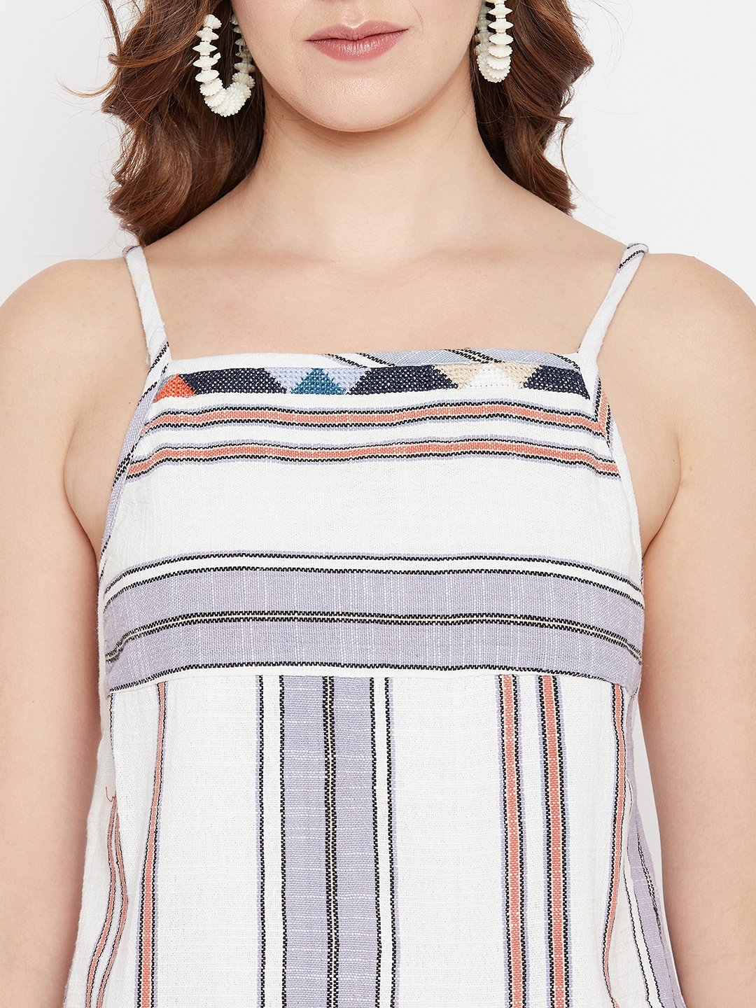 WOVEN SLEEVELESS SHORT DRESS WITH NECK EMB.
