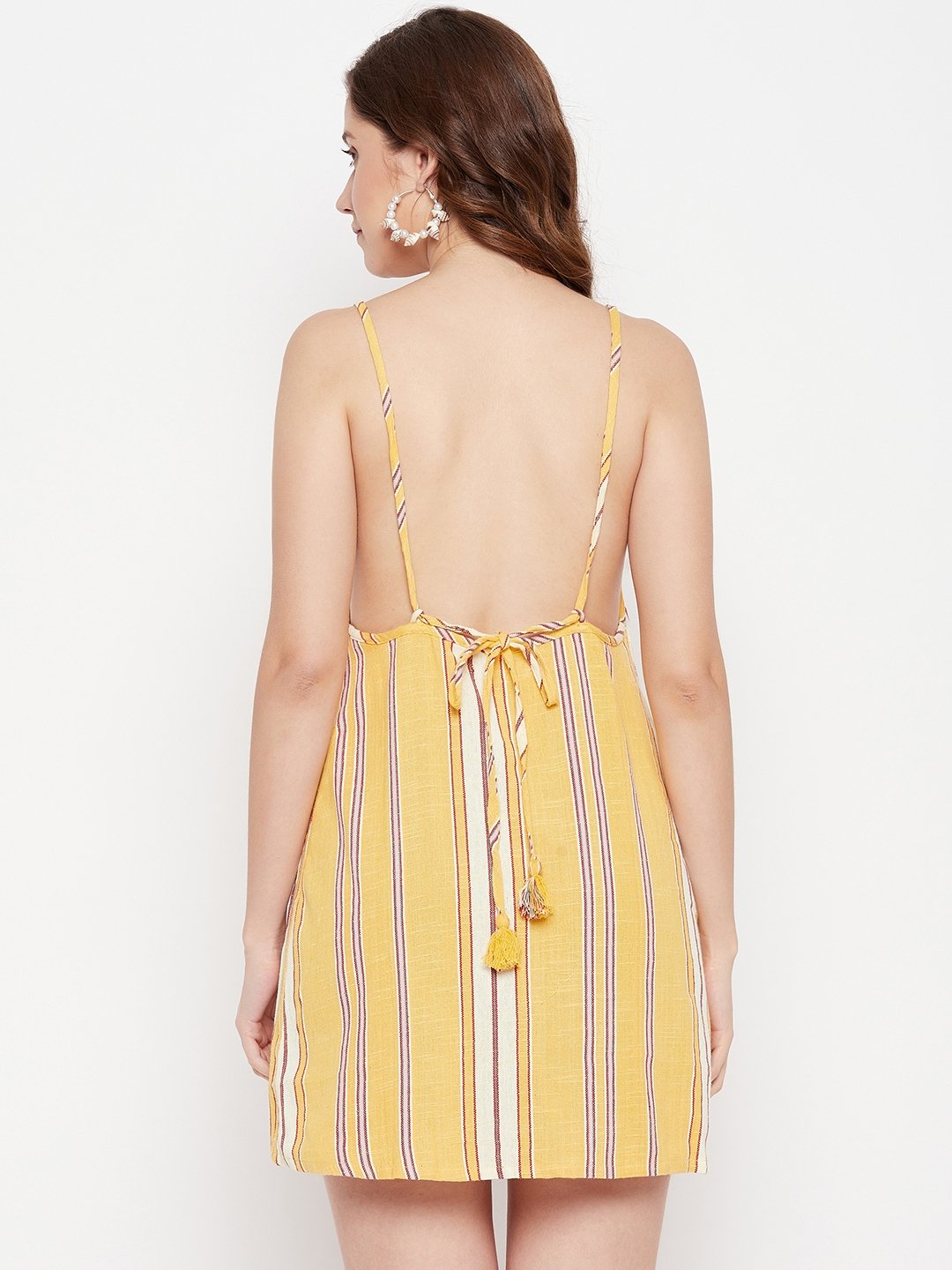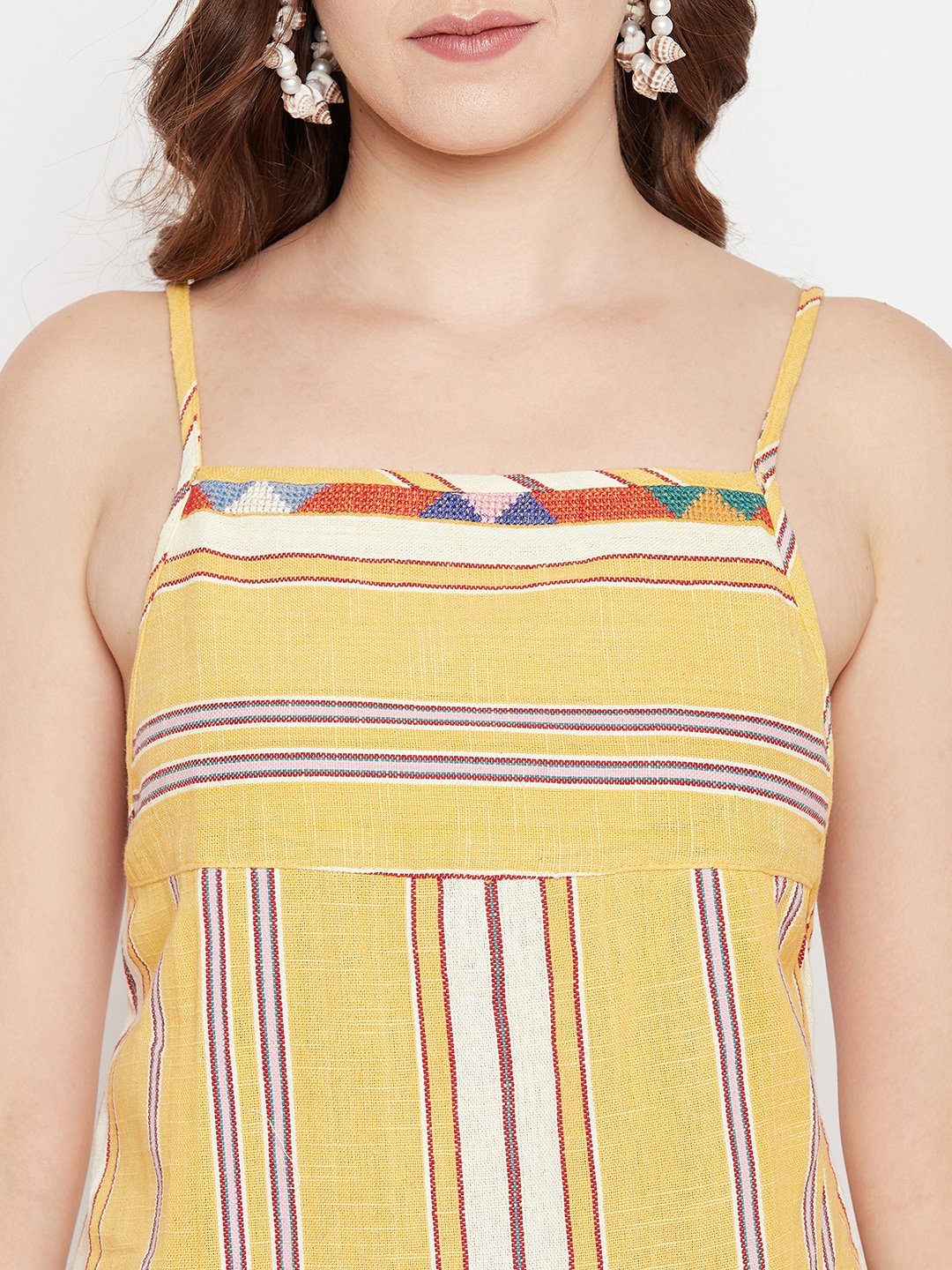 WOVEN SLEEVELESS SHORT DRESS WITH NECK EMB.